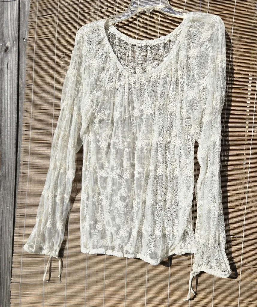 Ivory Lace Sheer Top Long Sleeve M White Size M - $28 - From Christine