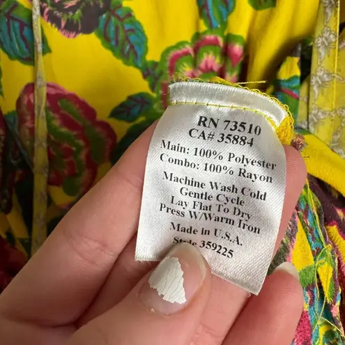 Ivy Jane yellow teal floral boho top sheer sleeves size small D17 - $29 - From Rebekah