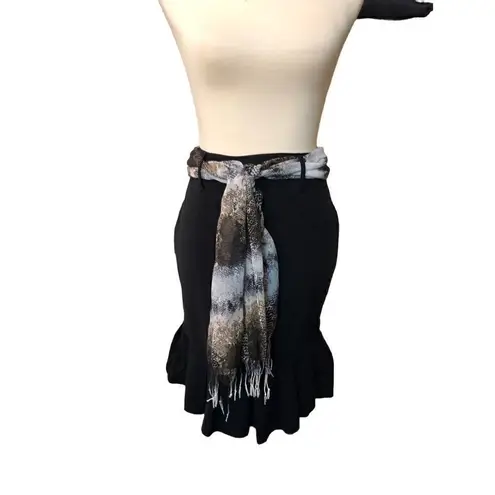 Byer y2k black high rise skirt with pleated bottom. Added reptile print fringed sash. Vintage little... Show more