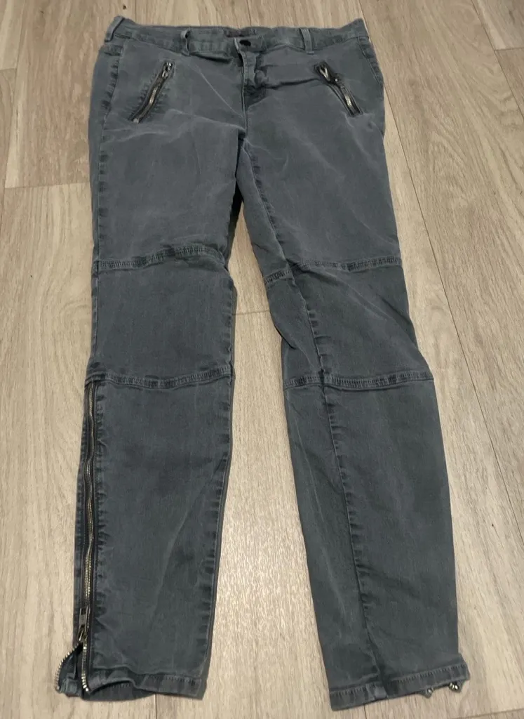 Stylish gray skinny jeans. Features zipper details. Perfect for casual wear. 1096