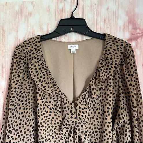 J. Crew Factory Camel Tan Spot Print Ruffle Front Blouse Size L - $18 - From Melissa