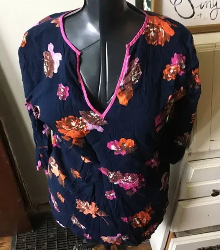 Lightweight, split neck floral tunic with small slits in the hem. In good, used condition. Approximately 20 inches from armpit to armpit, 30 inches long. From a pet and smoke free house. Happy to bundle!