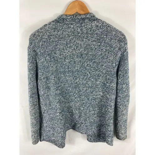 J Jill Pure Jill Chunky Knit Cottagecore Grandpa Cardigan open front blue white oversized soft fabri... Show more