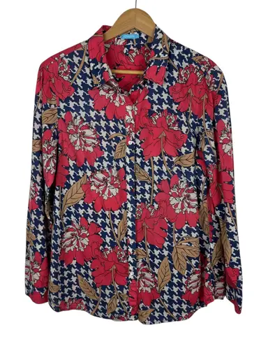 Good Pre-Owned Condition (see pics for details) Flaws: Has some pilling and fading from wear (shown in photos). A vibrant and stylish J.McLaughlin button-down shirt, perfect for adding a pop of color to your wardrobe. This long-sleeve top features a striking floral print layered over a classic houndstooth pattern, creating a unique and eye-catching design. The shirt has a traditional button-down style, making it versatile for both casual and more dressed-up occasions. Pair it with jeans for a relaxed daytime look or dress pants for a business casual ensemble. Ideal for brunch with friends or a casual Friday at the office. Color: Red Type: Button-Up Department: Women Material: Cotton, 100% Cotton Neckline: Collared Sleeve Length: Long Sleeve Sleeve Type: Classic/Fitted Sleeve Accents: Button Pattern: Floral Features: All Seasons, Breathable, Lightweight, Collared, Printed Fit: Regular Keywords: J.McLaughlin, floral shirt, button down top, long sleeve shirt, houndstooth print, womens top, casual shirt, statement shirt, cotton shirt, red and blue, large size, designer shirt, printed blouse, classic style, preppy Measurements: included in photos. Please compare the measurements to something you already own for a great fit! Fast shipping: Shipped out next business day! Please let us know if you have any questions!