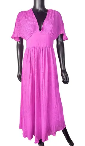 Keywords: Japna dress, pink maxi dress, flutter sleeve dress, v-neck dress, bohemian dress, crinkle dress, summer dress, flowy dress, casual dress, beach dress, party dress, womens dress, size S dress, pink dress S, polyester dress