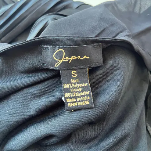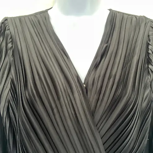 Black Japna Satiny Pleated Wrap V-Neck Top from Delicate Yarn Style NYE Holiday Glam Long Sleeve, pu... Show more
