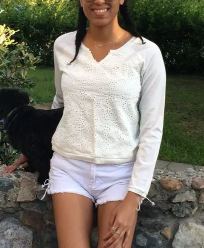 All white long sleeve top with crochet detailing on the front. Slight v neck. Still has tags. Kids s... Show more