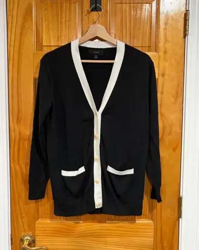 Beautiful J.Crew black cardigan with ivory contrast trim and gold-tone buttons. Classic preppy style... Show more