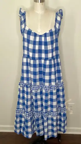 This J. Crew dress in size XL features a blue and white gingham check pattern with flutter sleeves a... Show more