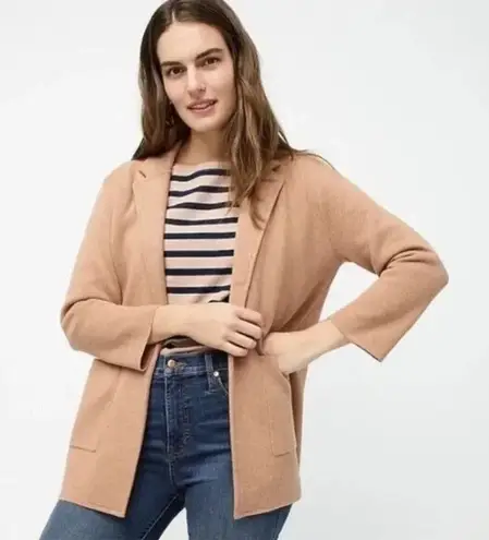 J. Crew Camel Sophie Open-Front Sweater-Blazer Cardigan Wool Cotton Blend XS Good condition. Small d... Show more