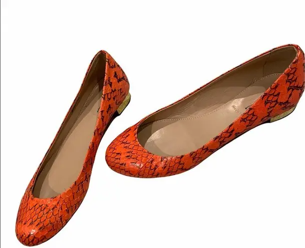 J Crew Collection Janey Snakeskin Flats Color is called modern red, but looks orange. Whipsnake up... Show more