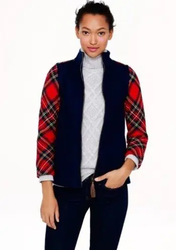 J.Crew - NWOT - Tartan plaid arms - Navy body - Front zipper with leather tassel zipper pull - Two f... Show more