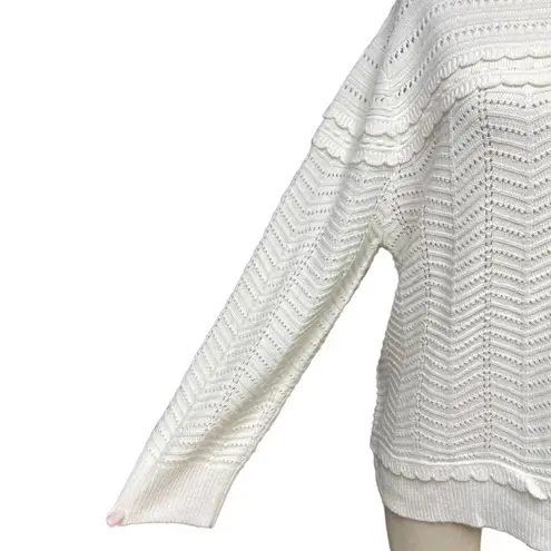Brand new with tags Crewneck scalloped pointelle sweater in ivory. AB853 Lightweight, merino-blend... Show more