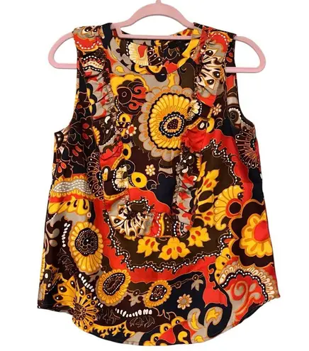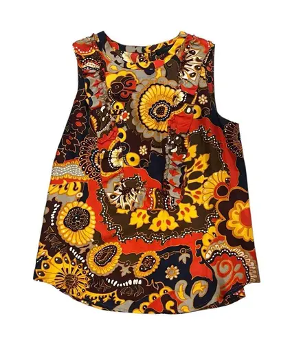 J. Crew Darwin 100% Silk Retro Floral Blouse Twill Ruffle Bib Ratti. Colorful (yellow blue orange b... Show more