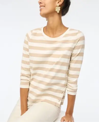 This J. Crew top is a fitted, ribbed long sleeve t-shirt in a versatile tan color. Its classic crew... Show more