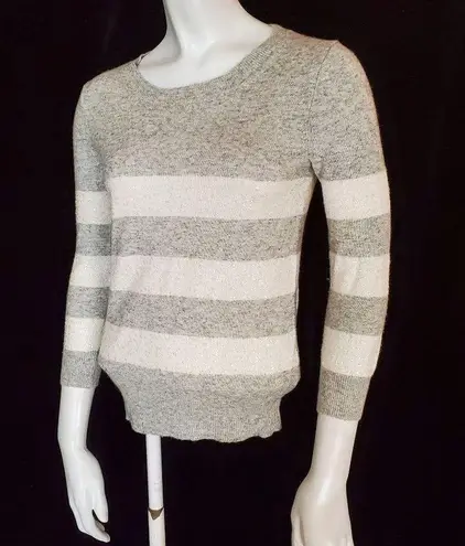 J. Crew gray and white striped sweater with white sequins. Size: Extra-Extra-Small 37% Viscose 35... Show more