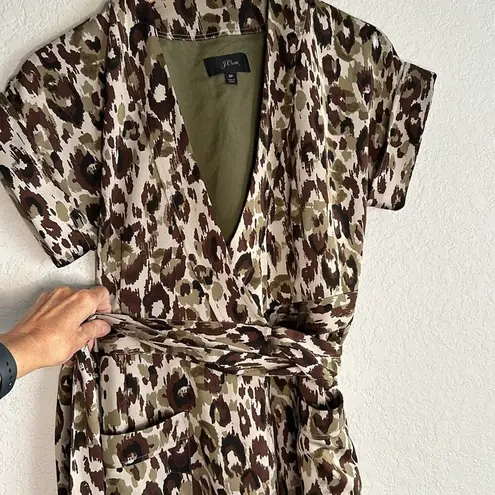 J. Crew Green Camo Wrap Dress Autumn Cheetah Size Small Petite Length 38.5” as hung Lined Two fron... Show more