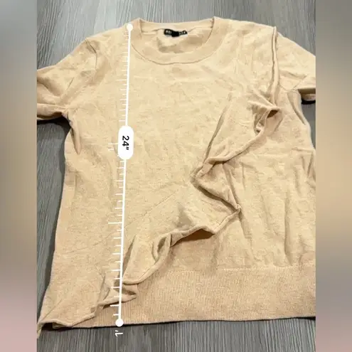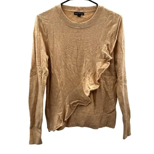 J. Crew Mercantile Beige Asymmetrical Ruffle-Front Crewneck Long Sleeve Sweater This stunning piece... Show more