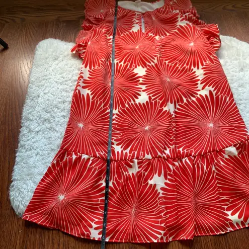 J. Crew Red Sunburst Floral Chiffon Flutter Sleeve Ruffle Dress Size 00 - $41 (62% Off Retail) New With Tags - From Sophia