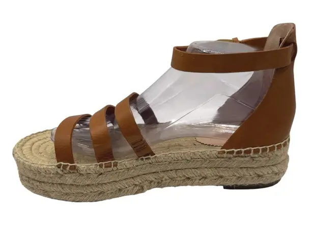 Chic and stylish, J. Crew Grace leather gladiator espadrille platform sandals. This footwear merges classic gladiator design with a modern espadrille platform. Featuring multiple leather straps that gracefully wrap around the foot and ankle, these sandals offer a secure and fashionable fit, complete with an adjustable buckle. The espadrille platform adds height while maintaining comfort, making them a versatile choice for various outfits.