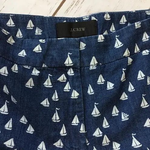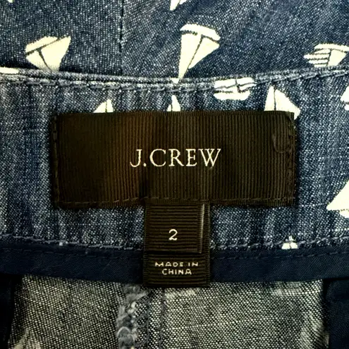 J Crew Shorts 2 XS Scalloped Denim Sail Boat Print Blue White Preppy 3" Inseam Condition: Pre-owned... Show more