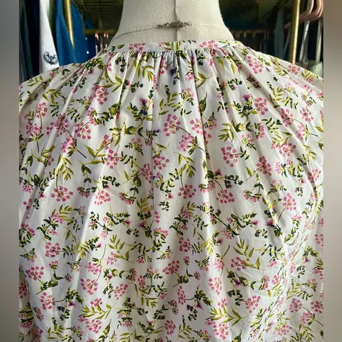 Re-Imagined by J.crew Chic floral blouse with a white base. Features green and pink floral patterns.... Show more