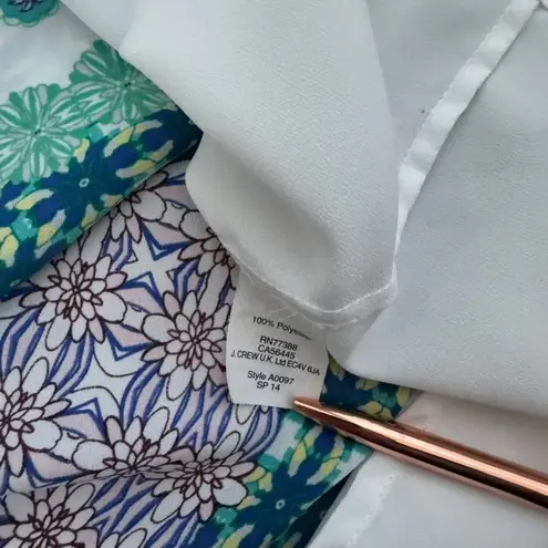 J Crew bandana print white, blue and green popover long sleeve boho 70's blouse. Collared neckline w... Show more