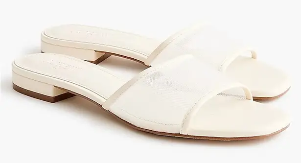 Cream mesh slide sandals. These elegant sandals feature a delicate sheer mesh strap across the vamp,... Show more