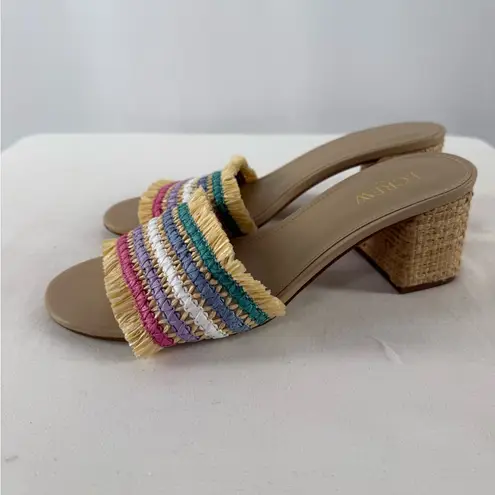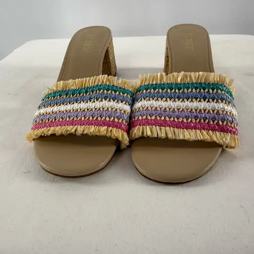 J. Crew Woven Mule Block Heels in Rainbow Raffia Multi Size 7.5 Excellent Used Condition Chic m... Show more