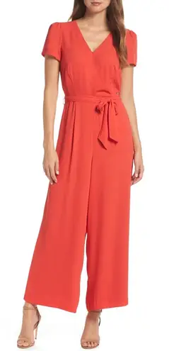 J. Crew wrap-style jumpsuit with slight tulip sleeves and wide legs. NO belt included. Crossover V-n... Show more