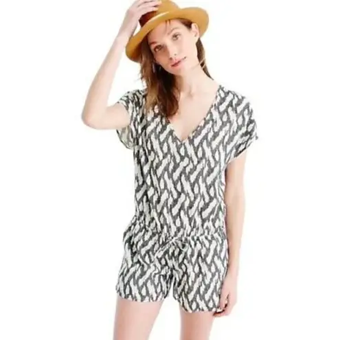 J.Crew • Tie-Waist Romper in Grey White Ikat Print, Linen Blend, Size XS Tie-Waist Romper by J.Crew... Show more
