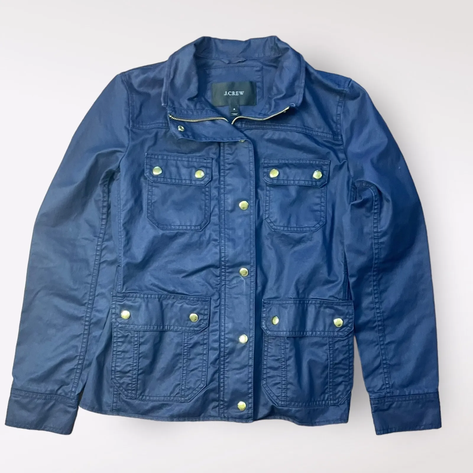 J.Crew Navy Blue Downtown Field Utility Jacket, Pockets, zip and button closure Style 19034 SP 14 Size S 100% Cotton Made in China Machine wash Preowned in excellent condition Preppy, coastal, casual, minimalist, fall, winter