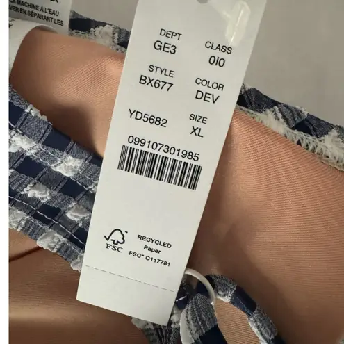 The product is a new J.CREW French bikini top in classic women's size XL. It features a gingham patt... Show more