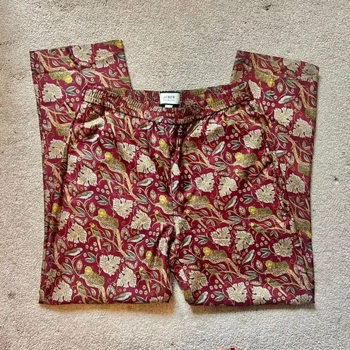 Stylish cropped pants with a maroon and gold pattern. Perfect for a chic look. 🪡 100% silk 📏 26”... Show more