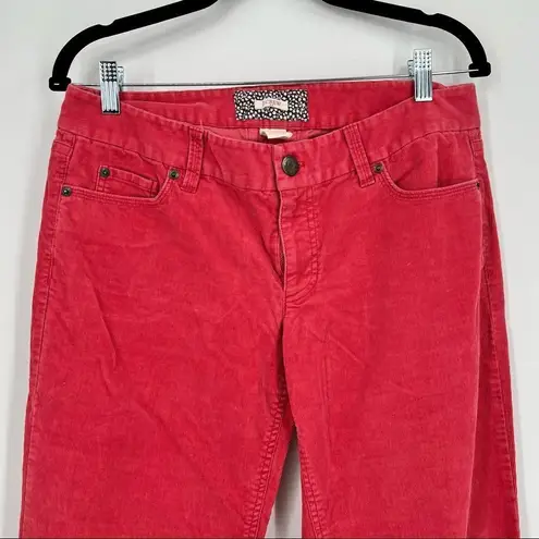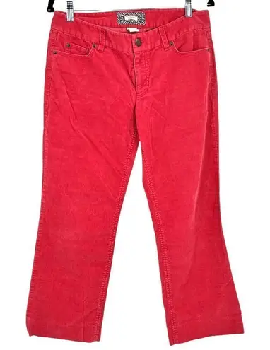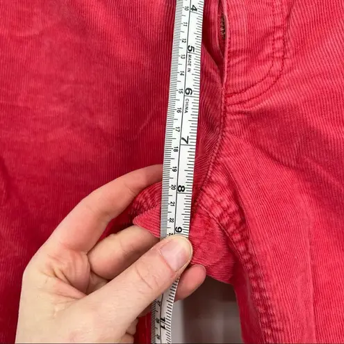Size 8 salmon pink corduroy bootcut style. These have been taken in and are short. Inseam about 26”.... Show more