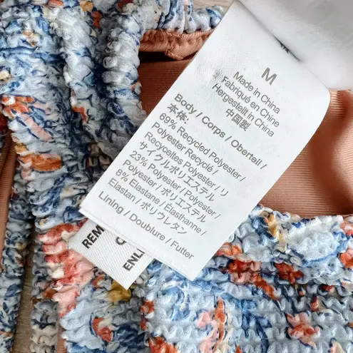 New with tags and liner Blue floral print Scrunchie material Knot straps Size medium