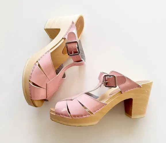 Patent leather clog strap sandals with a side buckle. Gently worn but still in great shape!