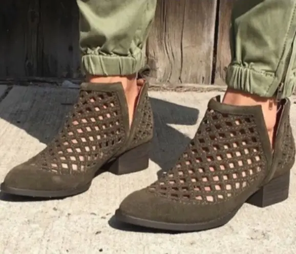 Jeffrey Campbell Taggart suede bootie in an dark green The top part of the boot is lined with wire... Show more