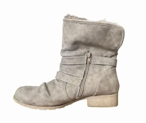 Jellypop Buckle‎ Detail Side Zip Faux Fur Booties Sz 9 Tan - $25 - From Lisa