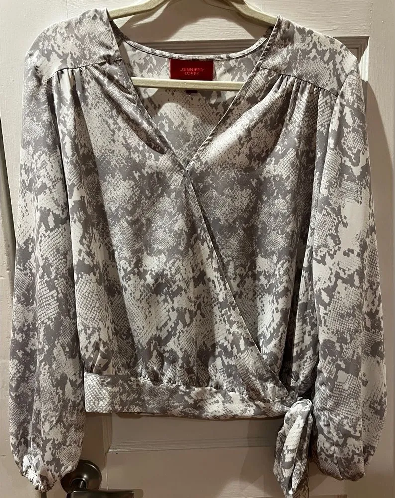 Jennifer Lopez Snake Skin Printed Blouse Deep V Neck Plunge Cut Wrap style Blouse Has a self tie on... Show more