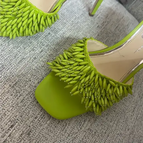 Bold lime green heels with unique textured design. Perfect for a standout look.