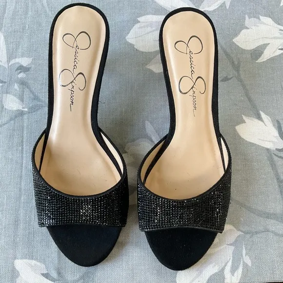 Cute black beaded slide kitten heels by Jessica Simpson Size 8 2.5” heel Worn once, heel caps look n... Show more