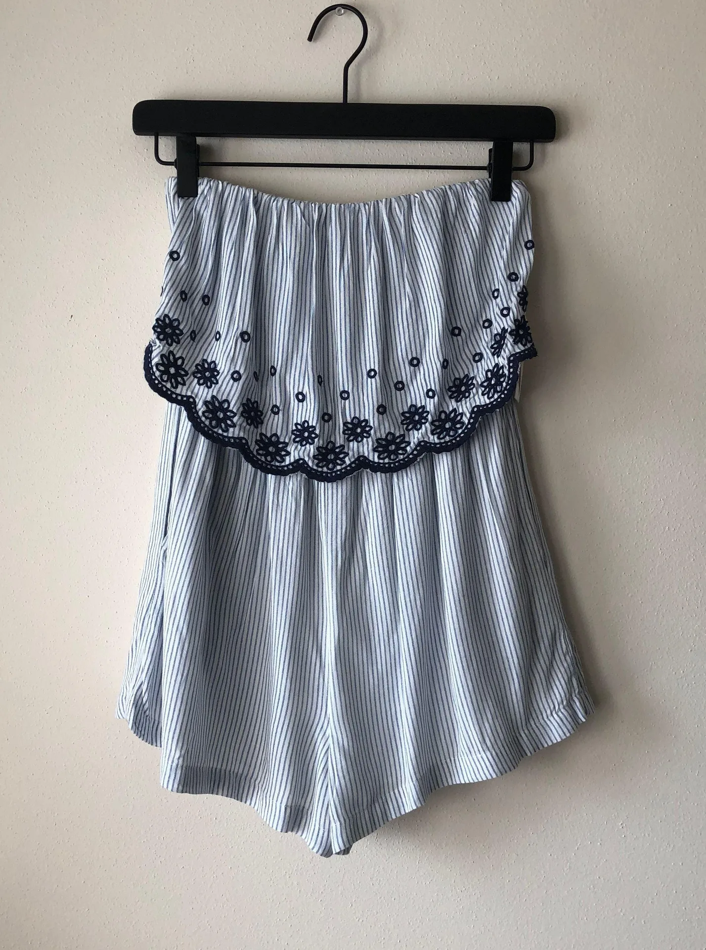 New with tags Size XS Jessica Simpson Blue & white striped romper with eyelet detail Strapless