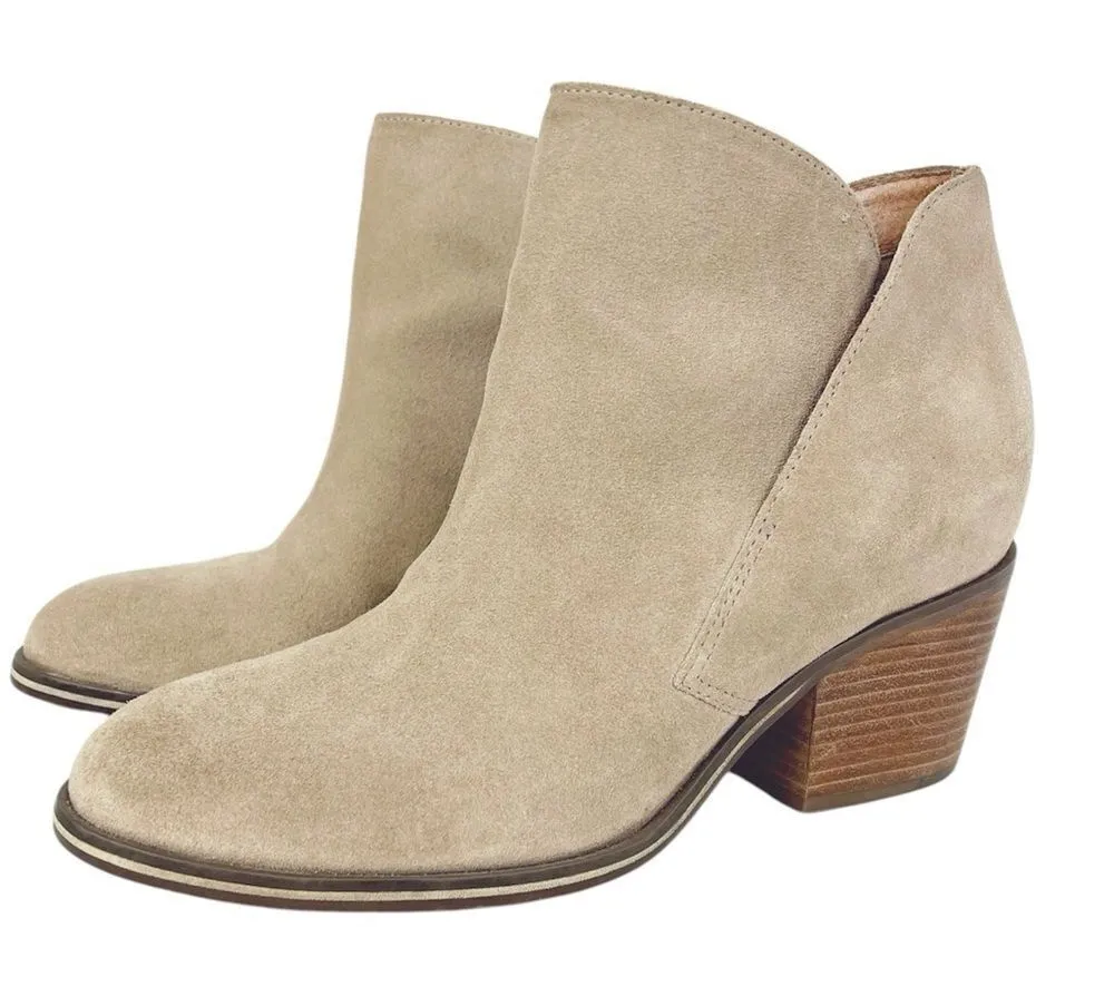 Super cute pre-owned Jessica Simpson Tandra Beige Taupe Suede Ankle Bootie Block Heel Size 9. Normal... Show more
