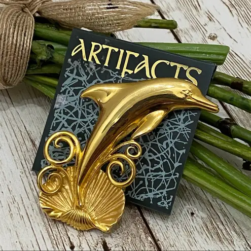 JJ Artifacts Gold Tone Dolphin Shell Brooch - $23 New With Tags - From Beadsatbp