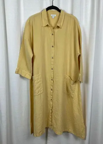 J.Jill Pure Jill Butter Yellow Linen Patch Pocket Button Front Midi Shirt Dress Sz.L Dress is in e... Show more