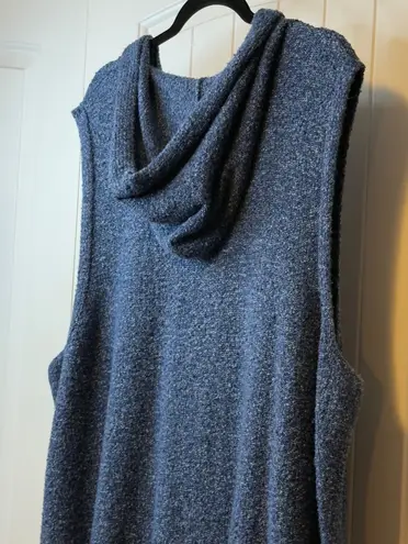 Keywords: J Jill vest, plus size vest, women's vest, knit vest, sleeveless vest, hooded vest, zip front vest, blue vest, cotton blend vest, casual vest, layering top, fall fashion, winter fashion, transitional wear, comfortable clothing