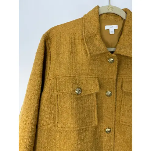 Polished and modern J.Jill textured button-front jacket in women’s XL. This mustard-gold woven jacke... Show more