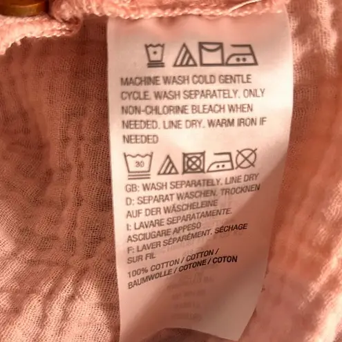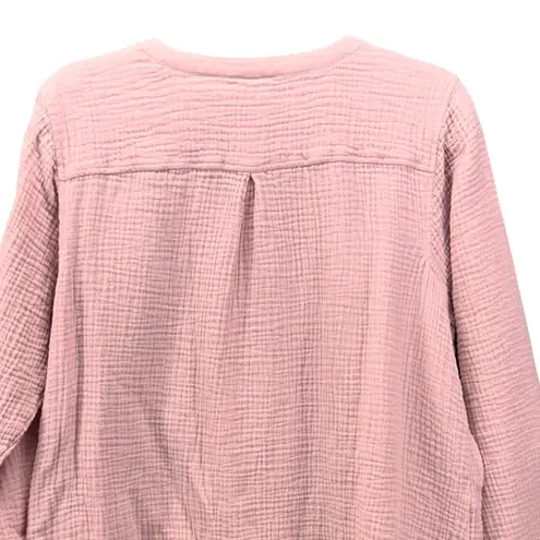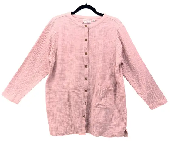 A whisper of comfort and style, this Joan Rivers button-down shirt offers a relaxed fit. The soft pink hue complements the textured gauze fabric, creating a visually appealing and tactile experience. Featuring a classic button-down design, this tunic-style shirt includes long sleeves and practical pockets, blending functionality with effortless charm. The lightweight construction ensures breathability and ease of wear, making it a versatile addition to any wardrobe. * Pit to Pit: 21.5 inches * Length: 29 inches Thank you for checking my item. If you have any questions before and after purchase, please contact me first. Items came from smoke free, dog friendly home Please check measurement before buying. Measurements are also on photo. My handling time is 1 business day. Have a great day!!!!!If the item is used, it was washed and I used a fabric softener which is either fresh scent, lemon, or lavender scent. If its new, I used Dryel.