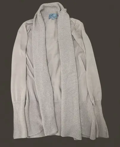 Classic Joan Vass New York knit jacket in a soft oatmeal beige. Zip front, structured collar, and comfortable medium-weight fabric. Great for work or casual layering. Size: Small Condition: Excellent Color: Oatmeal Beige Smoke-free home.